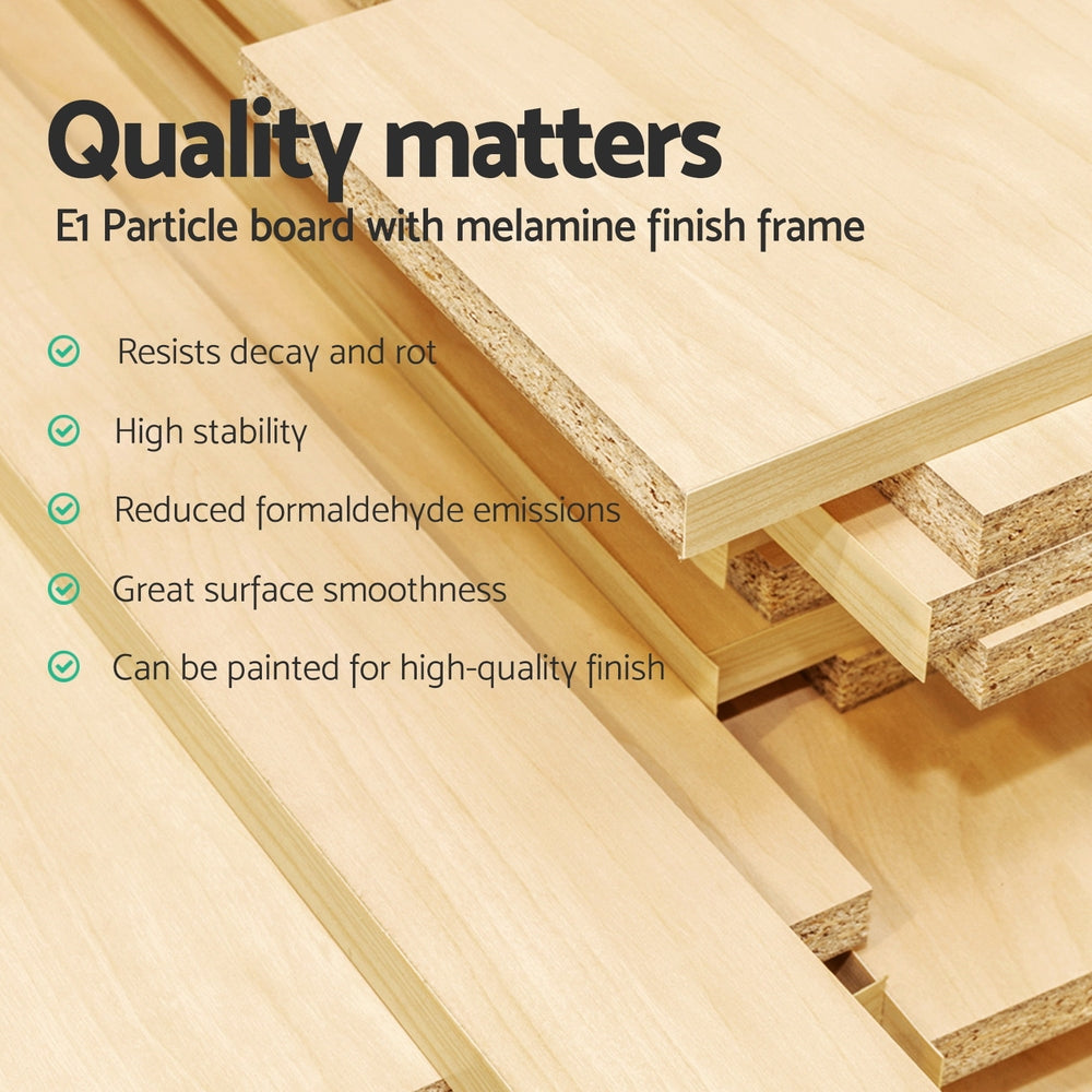 Introducing the Artiss Buffet Sideboard, a modern storage solution. This sideboard combines style and functionality with its clean lines and practical design. Crafted with a melamine finish and clear paint, it offers a contemporary look that enhances any living space.