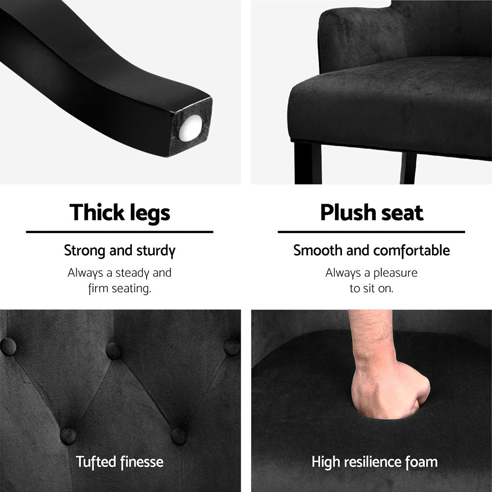 4x Artiss Dining Chairs Velvet French Provincial Armchair Black