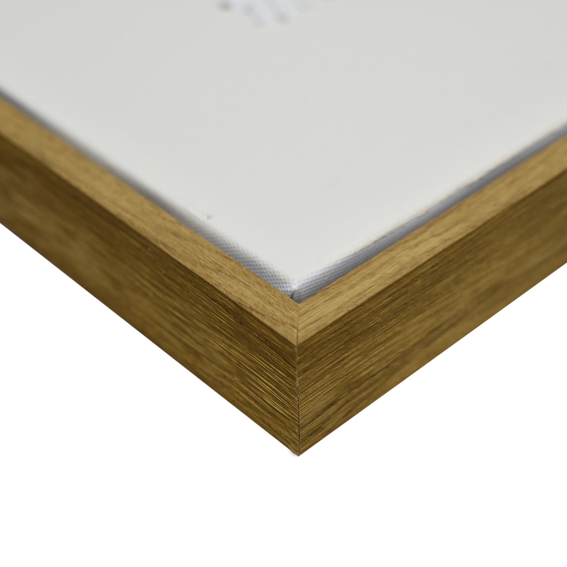 Stretched and gallery wrapped around a wooden stretcher and finished with a floating frame. There is a gap between the frame and print, which creates the floating effect and literally makes the canvas print stand out even more.