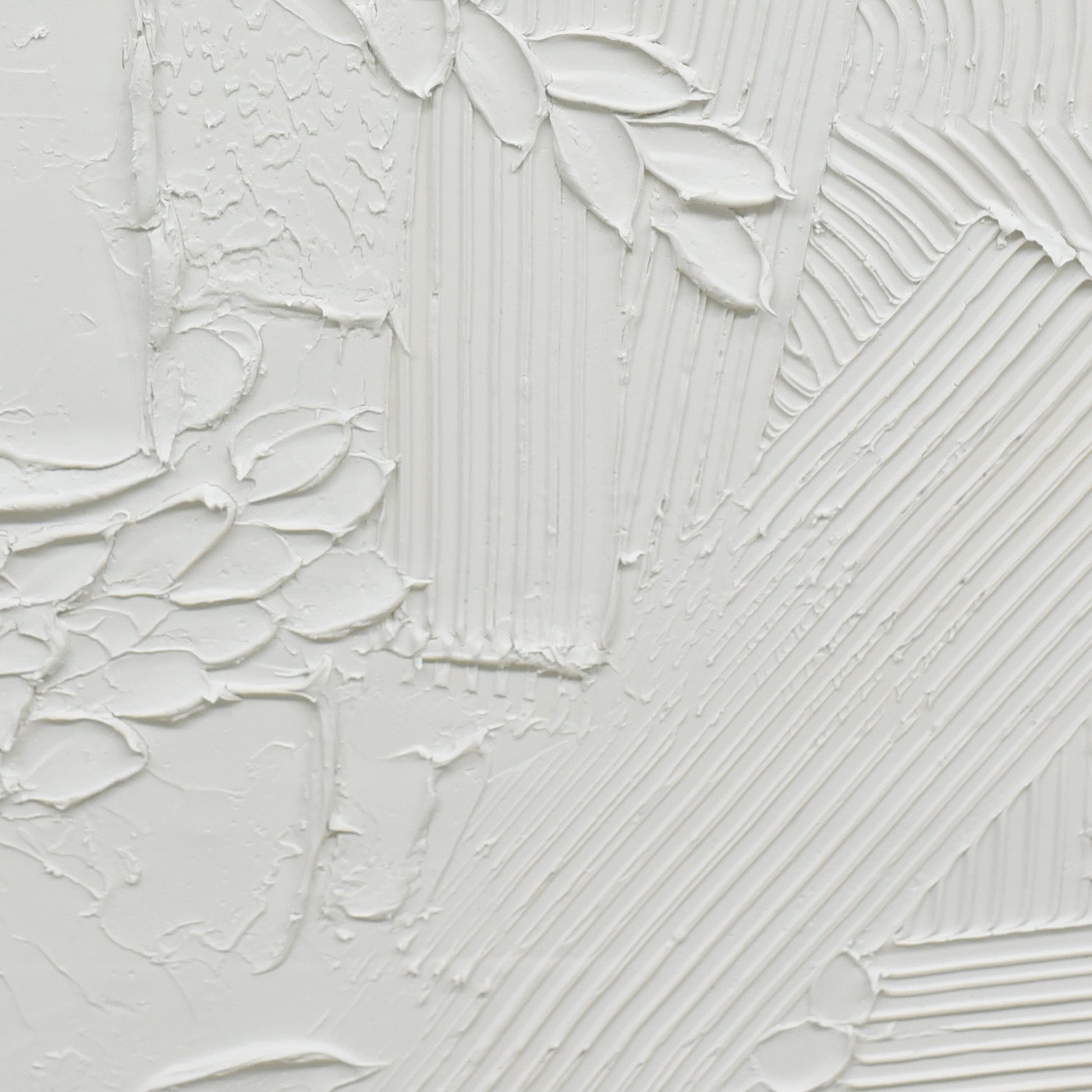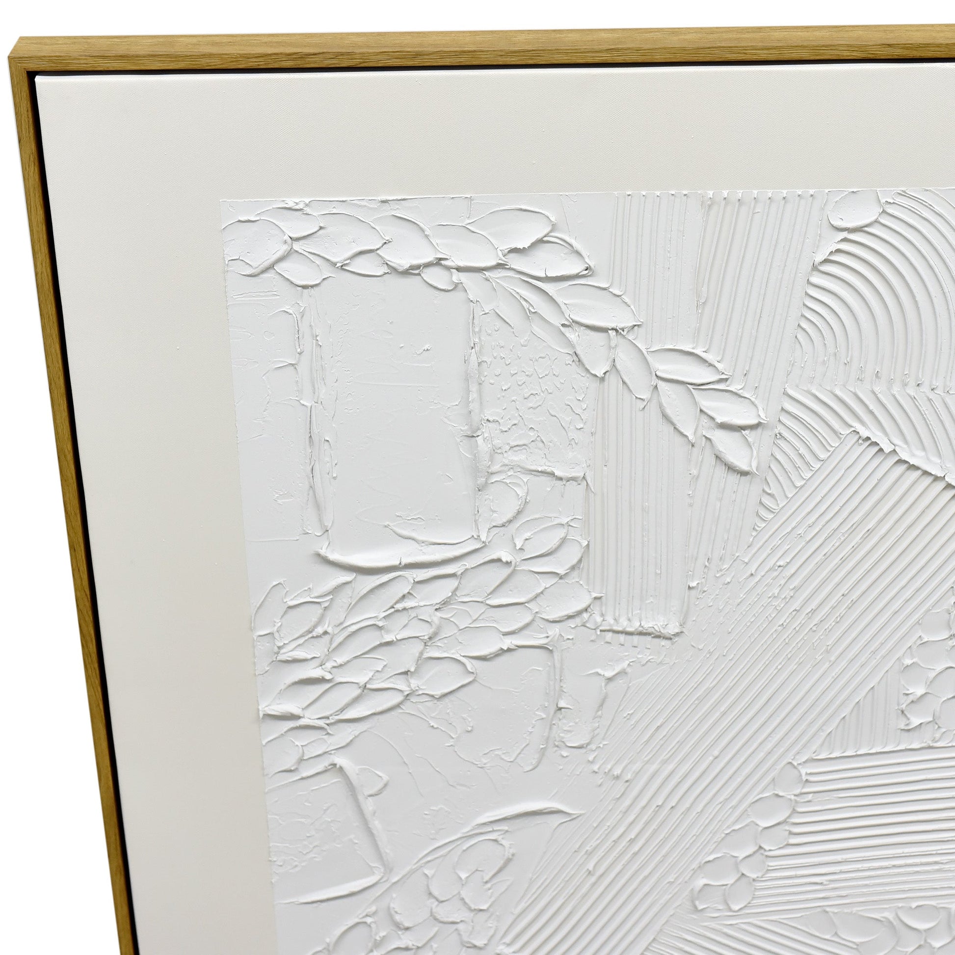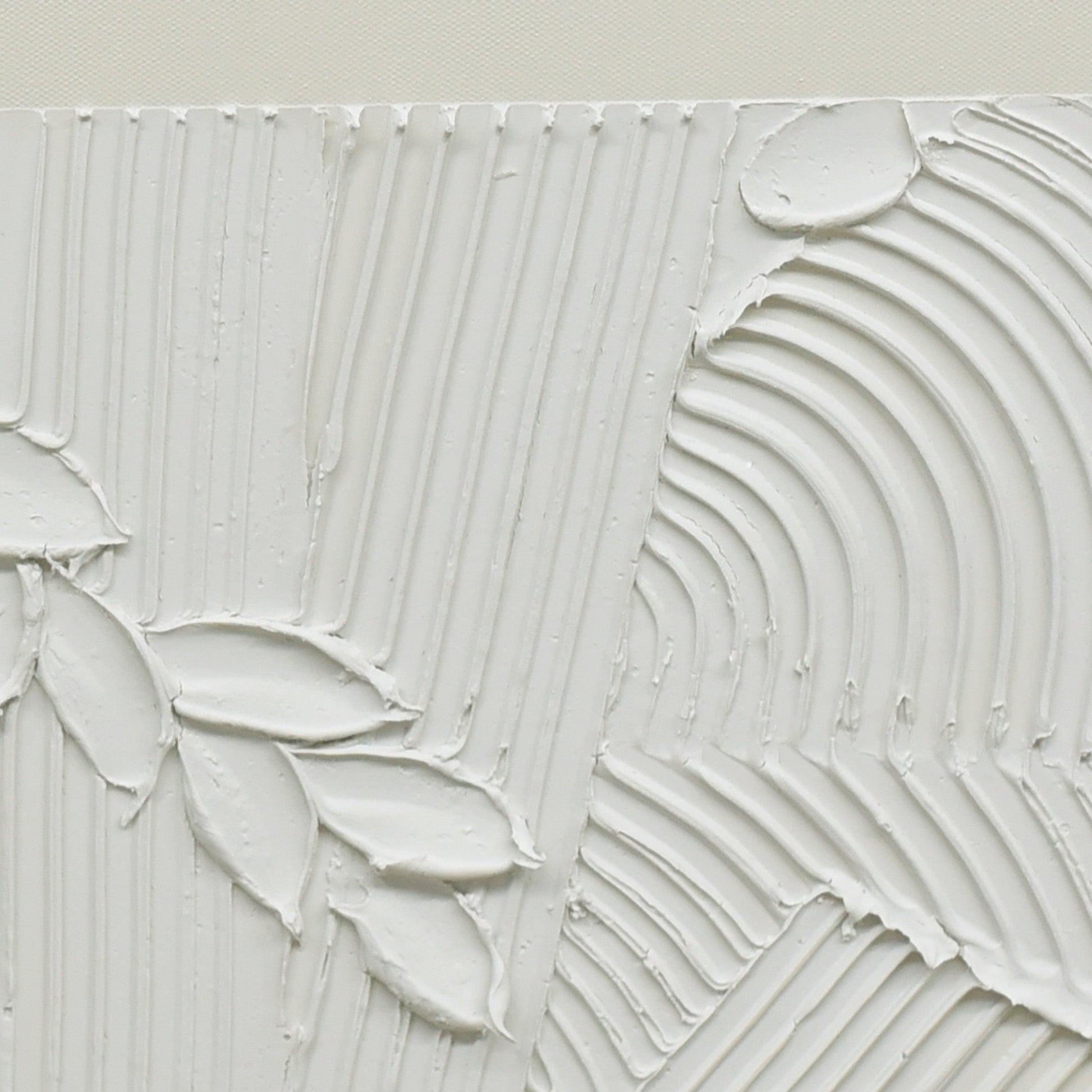 "Plaster Panorama" is a distinctively crafted 70cm x 90cm artwork, embodying the raw beauty of hand-applied textures. At its core, thick strokes and grooves of pristine white plaster dance across the canvas in a symphony of chaotic yet harmonious motion. Each textured element tells a story, revealing the meticulous hand of the artist and the unpredictability of the medium. This captivating array of textures is then beautifully framed by a beige border, offering a stark contrast to the white and adding an air of sophistication. Set within a dark wood frame, "Plaster Panorama" serves as a testament to the beauty of abstract art and the unique allure of plaster on canvas, bringing a tactile dimension to any space it graces.