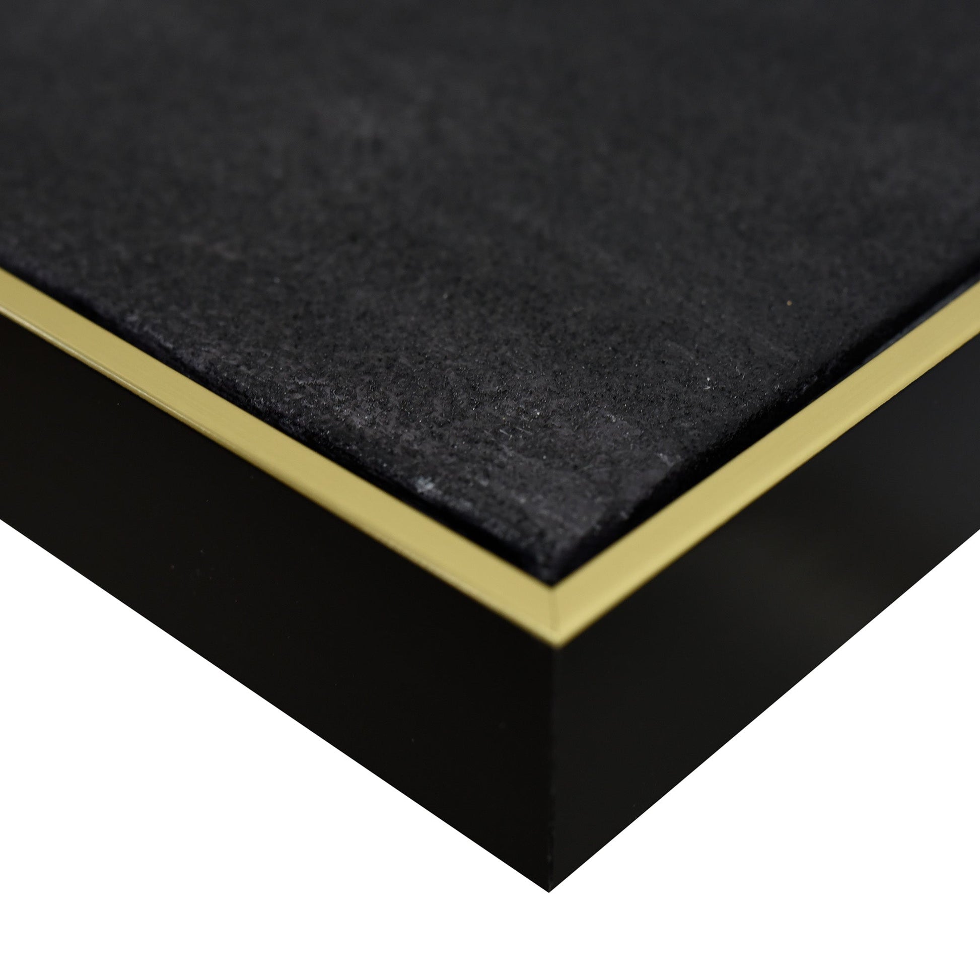 Stretched and gallery wrapped around a wooden stretcher and finished with a floating frame. There is a gap between the frame and print, which creates the floating effect and literally makes the canvas print stand out even more.