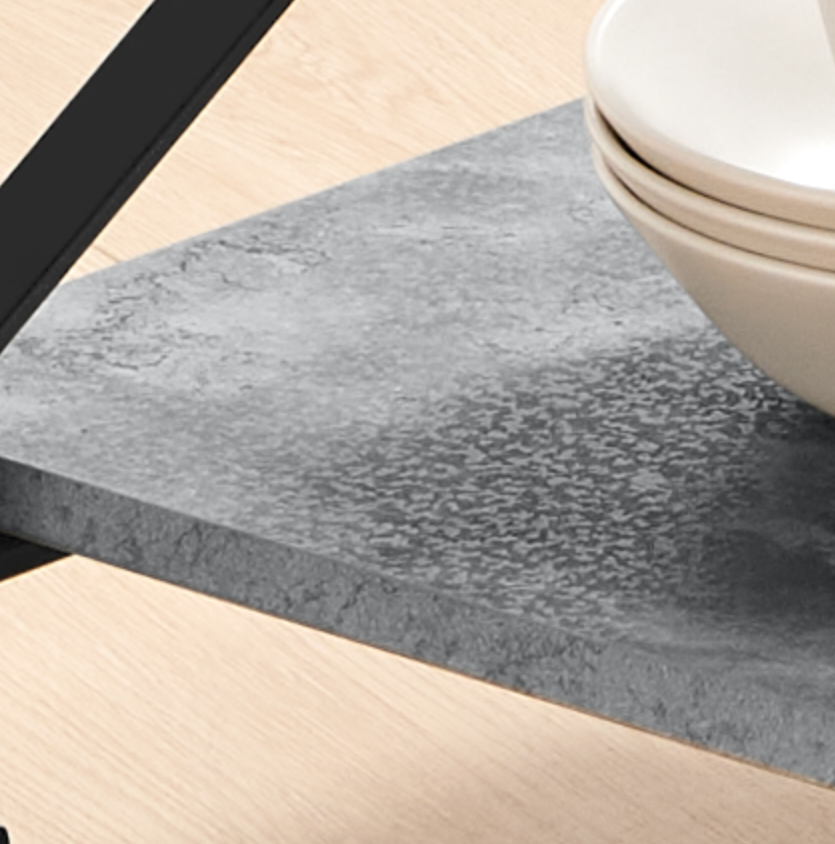 - Materials: Powder coating metal frame, MDF laminated shelves, and PA casters (2x lockable) for enhanced mobility and stability.