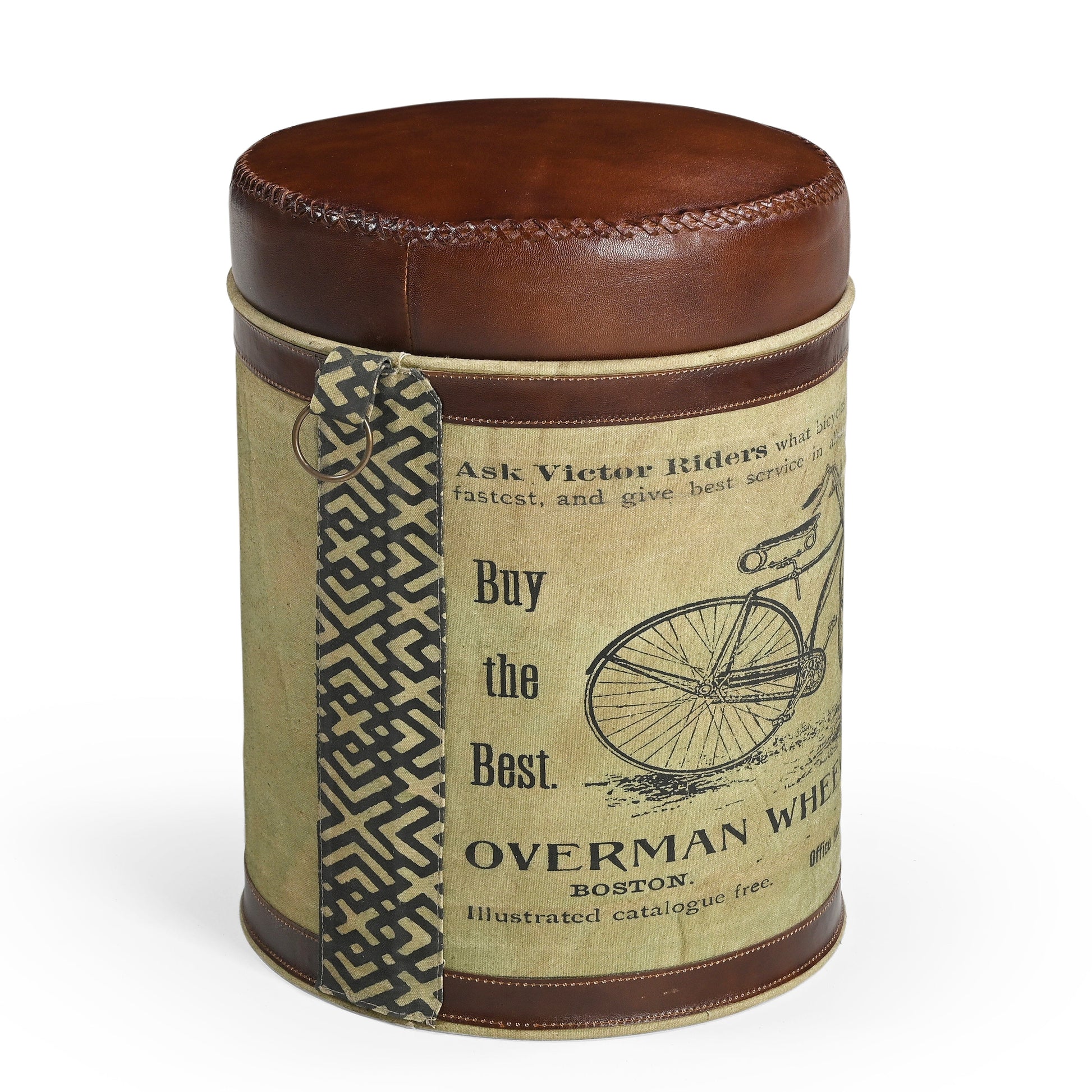 In the early 1860s the first true bicycle was created in Paris, France, by attaching rotary cranks and pedals to the front wheel hub of a dandy-horse. With a marking of 1862 our Cylindrical Bicycle Ottoman is not only a piece of furniture but a tale of history.