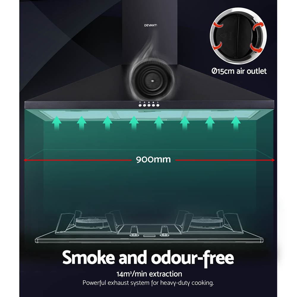 Devanti 900mm Range Hood 90cm Rangehood Black