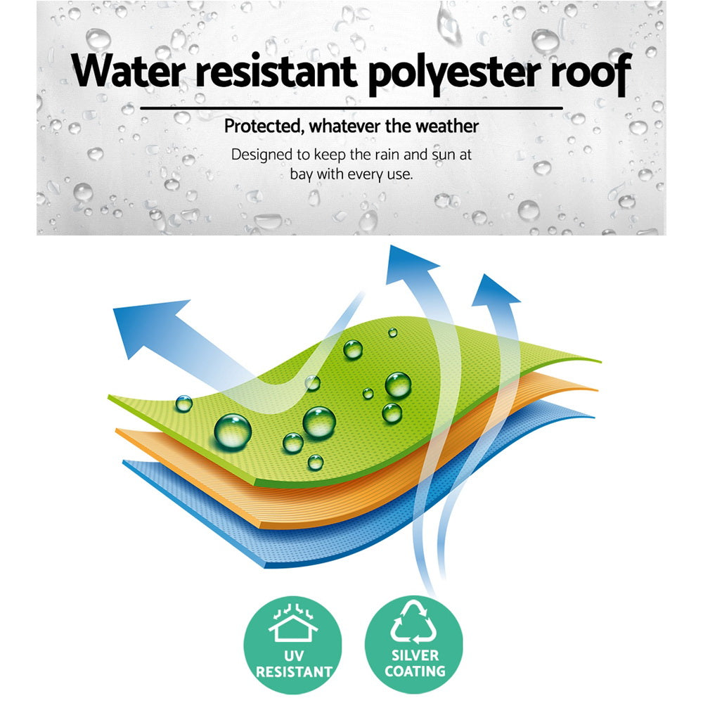 In your garden, at an outdoor BBQ or sports event, on your travelling vacation or on market days, our INSTAHUT Pop-up Gazebo is your ideal solution for instant cover outdoors. With a wide roof coverage of 300cm by 300cm, the exceptional cover is made of durable silver coating 210D Oxford fabric that is both UV and water resistant. Height can be easily adjusted with four pre-sets, ranging from 232cm to 250cm. It also features two zipped entrances and insect-proof mesh walls. Plus, the powder-coated steel frame, cross-bar frame work and steel supporting legs mean that this gazebo is no easy pushover from man or weather. The gazebo can be set up in minutes and kept away just as quickly in your car boot, van, trailer, garage or shed. Thanks to its portable design, quick and convenient hook and loop attachments, fast release and fasten rings and handy nylon inserts for hassle-free use.