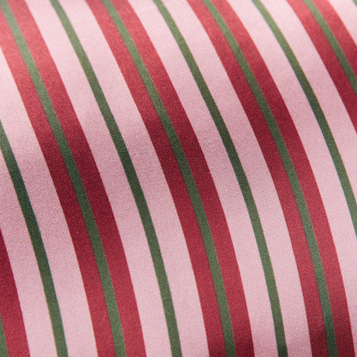 Decorative cushion KAAT Amsterdam Phoeby Multi Reversible Oblong Filled Cushion 30cm x 50cm has a cheerful look with a retro touch. The front features a print with lots of mini retro patterns in various colours of pink, green, sage, and black. The back features an all-over print of coloured stripes. Decorative cushion Phoeby is made of 100% polyester satin. The size is 30 x 50 cm. The cushion has a zipper at the bottom and comes with a resilient polyester inner cushion. Nice detail: the cushion has a golden puller at the zipper in the shape of an Amsterdam canal house. The cushion is is not suitable for machine washing or tumble drying.