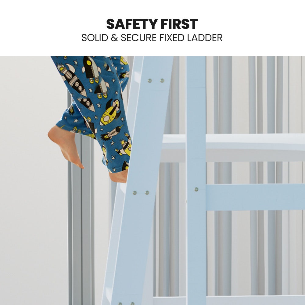 KINGSTON SLUMBER Wooden Kids Single Loft Bed Frame with Desk - White
