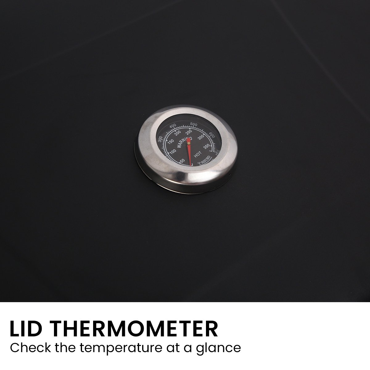 Cook up a feast for the entire family with the Wallaroo Portable Square Barbecue Grill. This heavy-duty BBQ comes with a side shelf for utensils, seasonings, serving plates and more. It has four air vents and a charcoal access door, allowing you to tend the fire safely without losing too much heat. You can also check the temperature using the thermometer on the lid. The large grilling and warming racks ensure that you can cook enough food for the whole party!